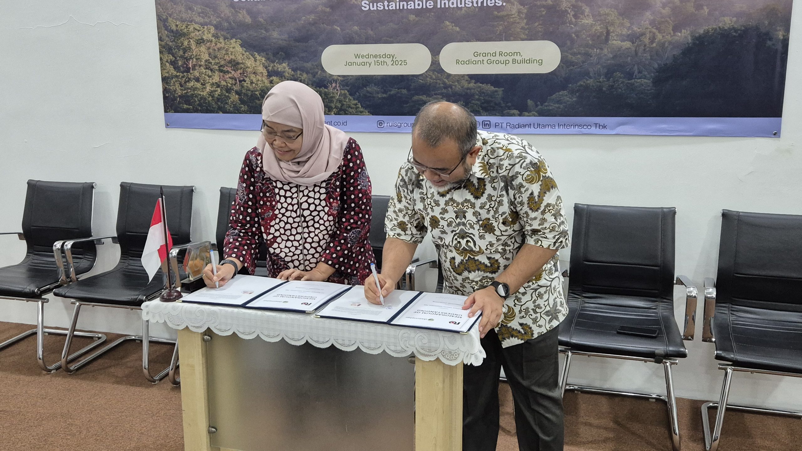 Bibin Busono, Deputy President Director of PT Radiant Utama Interinsco Tbk mengatakan “Kemitraan ini adalah wujud nyata komitmen kami untuk membangun masa depan yang lebih hijau. Kami percaya bahwa dengan kolaborasi ini, kami dapat mencapai dampak yang lebih luas dan berkelanjutan.”